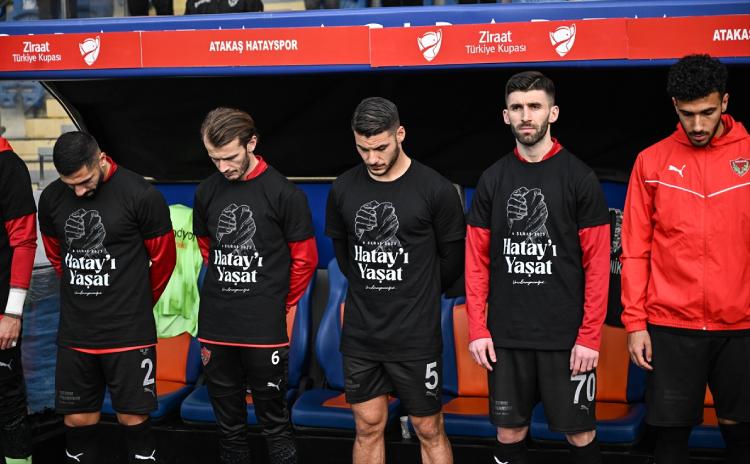 Depremin üzerinden bir yıl geçtikten sonra Hatayspor Türkiye Kupası maçında Başakşehir’e konuk oldu. Fatih Terim Stadı’nda oynanan karşılaşma öncesinde Başakşehirli futbolcular üzerinde depremden etkilenen 11 ilin haritasının bulunduğu ve ‘Unutmayacağız’ yazan tişörtlerle sahaya çıktı. Hataysporlu oyuncuların ısınmaya çıktıkları tişörtlerin üzerinde de “Hatay’ı Yaşat” ifadesi yer aldı.