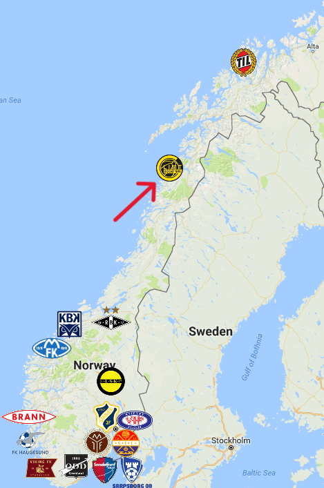Norveç kuzeyde, Bodo kuzeyin de kuzeyinde. İşte Norveç’te mücadele eden bazı takımları gösteren harita.