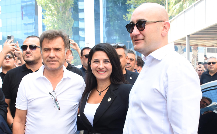 İzmir Beşiktaşlılar Derneği Başkanı Özlem Tezişçi, Hüseyin Yücel ve Feyyaz Uçar’a karşıladı.
