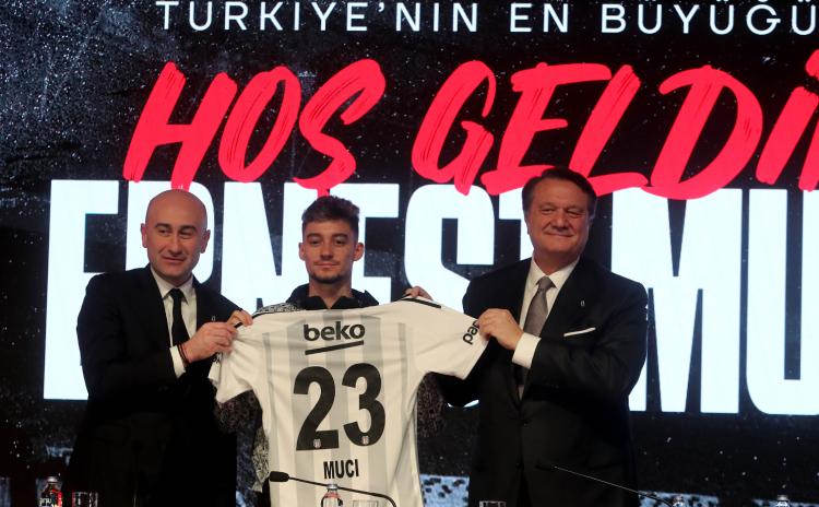 Hasan Arat daha sonra transferler hakkında tek tek konuştu. Başkan, ilk olarak 23 yaşındaki Arnavut oyuncu Ernest Muçi’nin boynunda kartal dövmesi olduğunu hatırlatan ve transferin çok zorlu koşulların ardından gerçekleştiğini söyleyen Arat, “2001 doğumlu. Aynı zamanda boynunda Kartal var. Sanırım bu bir kader. Çok uğraştık. Arnavutluk milli takım oyuncusu. Bu sene Avrupa Şampiyonası’na katılacak. İlk profesyonel maçını Tiran’da 16 yaşında oynadı. 2021 yılında Varşova’ya geldi. Babası da şu an aramızda. Muçi, sen Beşiktaşlıların çok sevdiği ve güvendiği bir futbolcu olacaksın. Santos hocam ve Samet hocam seni çok istiyordu. Samet hocam 2 aydır senle ilgili çalışmalar yapıyordu. Evine, Beşiktaş’a hoş geldin. Boynundaki kartal dövmesi hayattır, kaderin cilvesidir. Bütün Beşiktaşlılarla kucaklaş” diye konuştu. Muçi için yapılan anlaşmanın çok zor olduğunu dile getiren Arat konuşmasına şöyle devam ettiB “Bu anlaşma çok zor oldu. Muçi, takımıyla kamptaydı. Varşova’nın başkanıyla olan dostluğumuz, Polonya Cumhurbaşkanı, ricamızı kırmadılar. Bu iş sadece bir transfer değil. Çok geniş, anlamlı bir anlaşma oldu. Muçi’nin babası süreci takip etti. Muçi’nin menajeri masaya oturduğunda bu işin olma ihtimali yok diyordu. Hüseyin Bey kendisine reaksiyon gösterdi, olacak dedi. Muçi’nin bu olanlardan haberi yok. Santos hoca, Muçi’nin gelmesini istiyorum dedi. 80’e yakın oyuncu gösterdi Samet hocam. İki kişiyi istedi. O iki kişi bugün burada. Hüseyin Yücel, masada benle birlikte Dino’yu ve Varşova’yı ikna etmeye çalışırken, Kaan Bey Antalya’dan gece döndü. Çarşı’daki ofisine gitti ve sabaha kadar kontratı bitirdi. İnanılmaz bir enerji gösterdi. Buradan Kaan Şakul’a çok teşekkür ediyorum.”