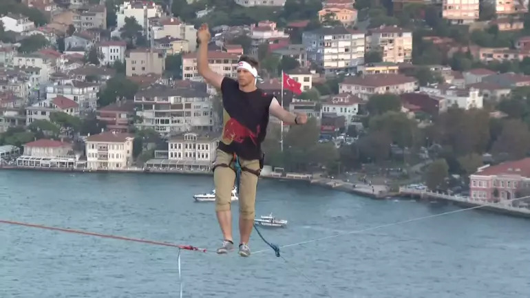 Jaan Roose, Anadolu Yakası'ndan Avrupa Yakası'na ip üstünde geçti. İstanbul Boğazı Slackline alanında üç kez dünya şampiyonu olan Red Bull sporcusu Jaan Roose’un akıllara durgunluk veren denemesine ev sahipliği yaptı. Estonyalı atlet 15 Temmuz Şehitler Köprüsü’nün ayakları arasına gerilen ipte Anadolu Yakası’ndan Avrupa Yakası’na yürüdü.