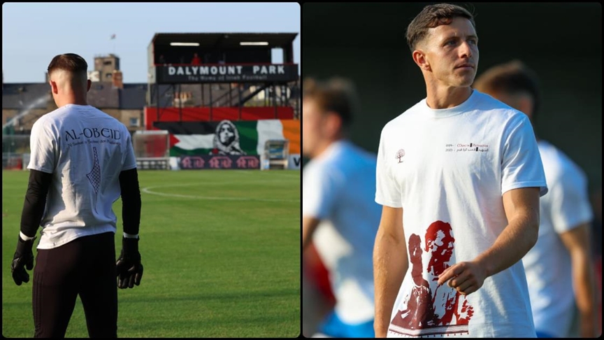 İrlanda’nın Bohemian takımı futbolcuları, İsrail tarafından katledilen Filistinli eski milli futbolcu Süleyman el-Ubeyd’i (Filistinli Pele) andıkları tişörtlerle sahaya çıktı.