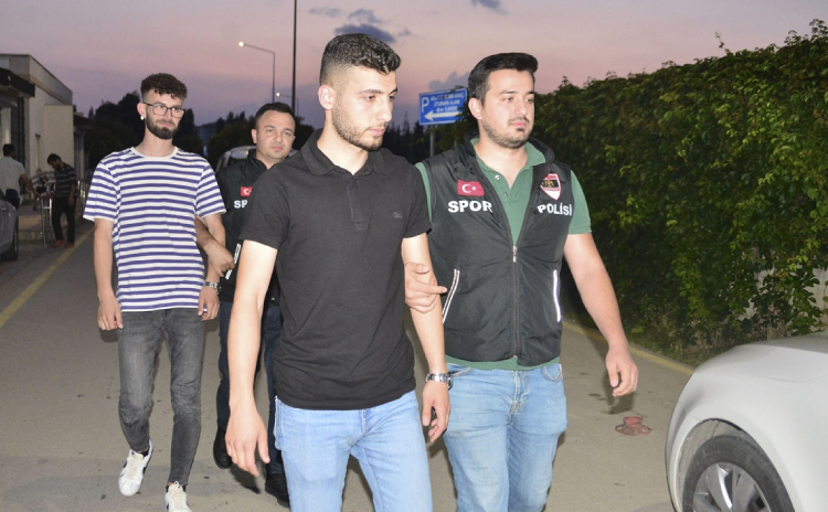 Adana’da Sakaryaspor-Bodrum FK arasında oynanan 1. Lig play-off final maçında, reklam panolarının altında saklanmış çantada çok sayıda meşale, sis bombası ve torpil bulunmasıyla ilgili iki kişi gözaltına alındı. Polis, çantanın Sakaryaspor malzeme sorumlusu O.K. tarafından stada getirildiğini ve soyunma odası girişinde stat reklam panosu görevlileri N.S. ve H.A’ya verildiği belirlendi. Çantayı reklam panosu altına sakladığı tespit edilen görevliler N.S. ve H.A, polis ekiplerince gözaltına alındı. Şüpheliler, emniyet müdürlüğünde alınan ifadelerinin ardından tutuksuz yargılanmak üzere serbest bırakıldı. Malzeme sorumlusu O.K’nin ifadesinin de Sakarya’da alınacağı öğrenildi. Sakaryaspor-Bodrum FK play-off final maçının 1. dakikası içinde Sakaryaspor taraftarlarının bulunduğu tribünlerden sahaya yanıcı maddeler atılması nedeniyle hakem Abdulkadir Bitigen, oyunu bir süre durdurarak anons yaptırmıştı. Atılan maddelerin temizlenmesinin ardından Abdulkadir Bitigen, yaklaşık 5 dakika ara verilen maçı hakem atışıyla başlatmıştı. Sakaryaspor’u normal süresi 1-1 biten ve uzatmaya giden maçta 3-1 mağlup eden Bodrum FK, Süper Lig’e yükselen üçüncü takım olmuştu.