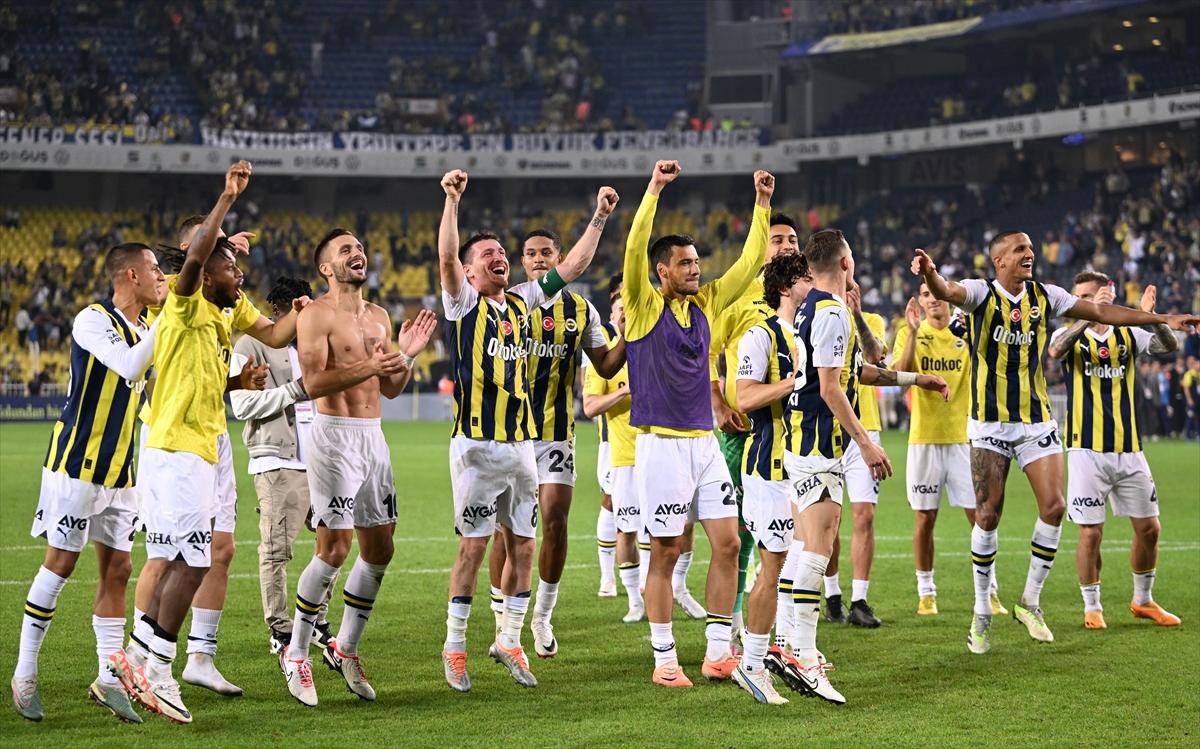 Fenerbahçe, galibiyeti taraftarıyla kutladı.