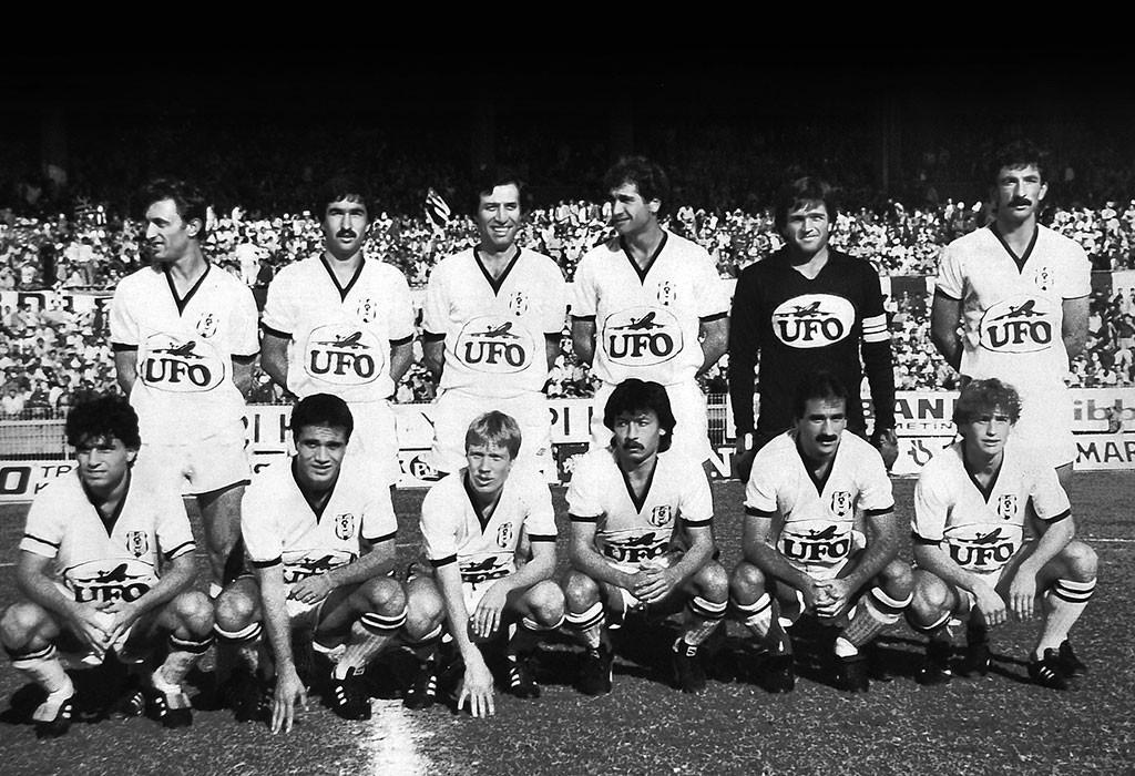 Ayaktakiler: Gökmen Özdenak, Fatih Terim, Cüneyt Tanman, Güngör Tekin, Müfit Erkasap, Nihat Akbay