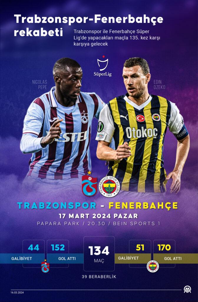 Süper Lig'de zirveyi yakından ilgilendiren maçta Trabzonspor Fenerbahçe'yi ağırlayacak. Bordo-mavili ekibin üçüncülük, sarı-lacivertlilerin ise şampiyonluk hedefiyle ilerlediği sezonda iki takım da üç puan için sahaya çıkacak.