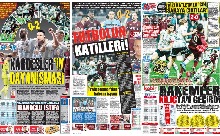 Trabzon’da yayın yapan yerel gazeteler ise maçın hakemi Arda Kardeşler ile VAR hakemlerine tepki içeren başlıkları manşetlere taşıdı. Başlıklar şu şekilde…