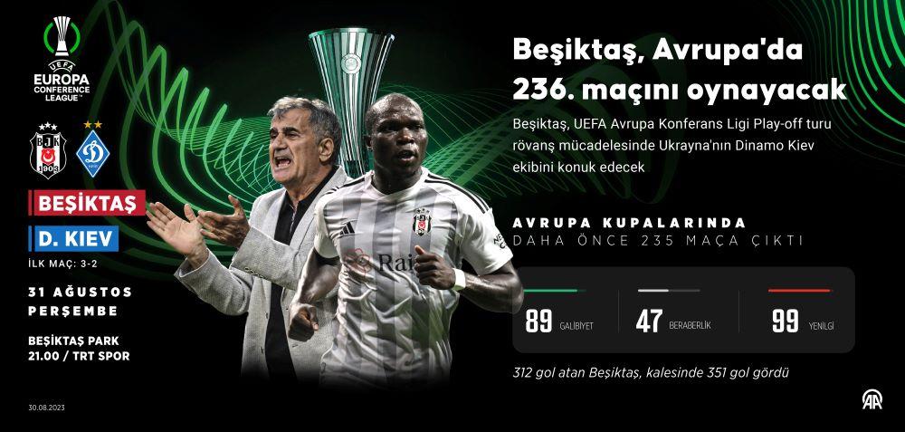 Siyah-beyazlı ekip bu sezon Avrupa’da oynadığı 5 maçı da kazandı. UEFA Avrupa Konferans Ligi’nin 2. ön eleme turunda Arnavutluk ekibi Tirana’yı 3-1 ve 2-0’lık skorlarla eleyen Beşiktaş, bir sonraki aşamada Azerbaycan temsilcisi Neftçi’yi 3-1 ve 2-1’lik skorlarla saf dışı bıraktı. Siyah-beyazlı ekip, Dinamo Kiev’i de ilk maçta uzatma dakikalarında bulduğu golle 3-2 yendi. Dinamo Kiev’i ağırlayacak siyah-beyazlı ekip, Avrupa kupalarında oynadığı 235 maçta 89 galibiyet, 47 beraberlik ve 99 mağlubiyet yaşadı. Avrupa arenasında 312 kez fileleri havalandıran Beşiktaş, kalesinde ise 351 gol gördü.