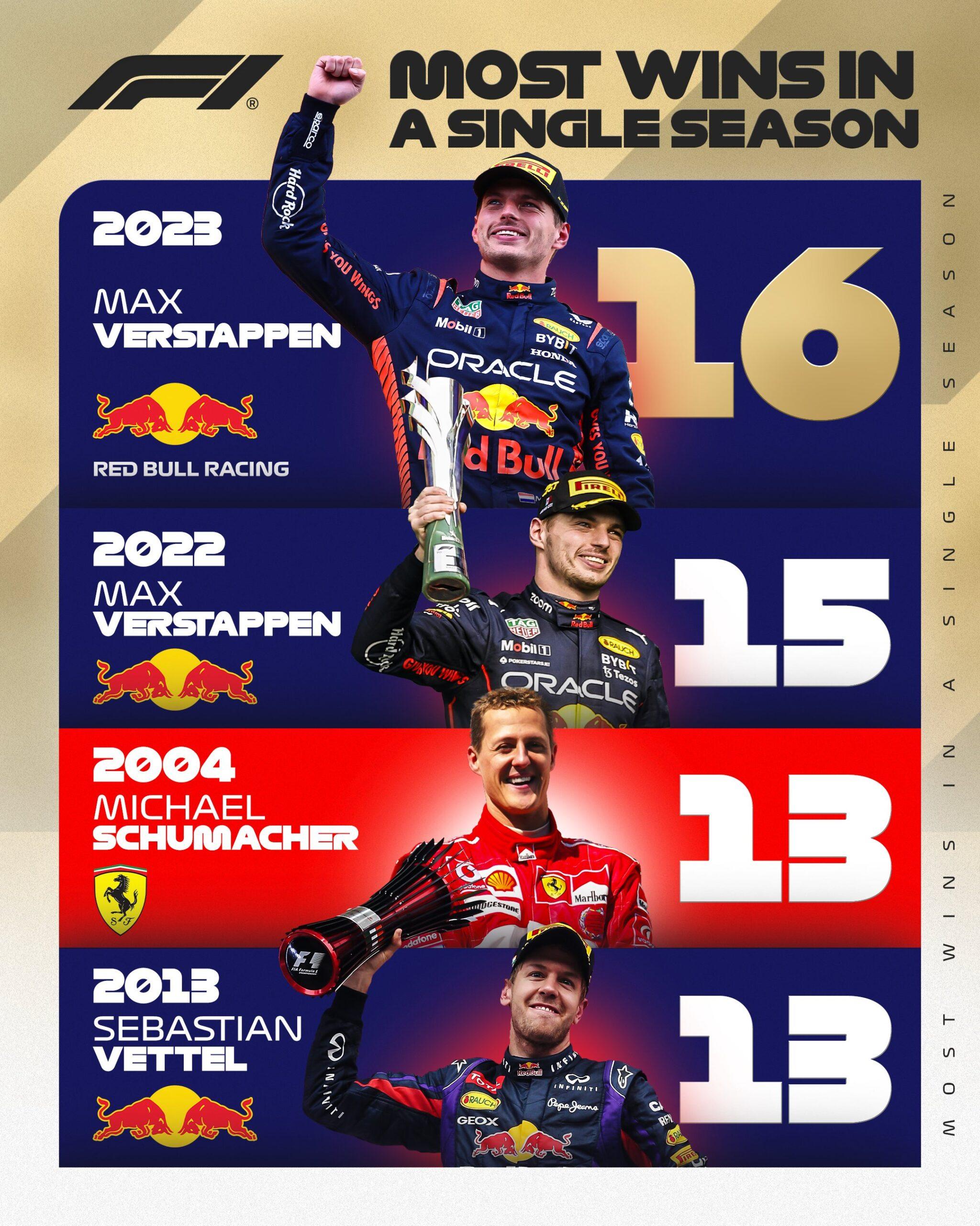 Bu sezon da son derece erken bir biçimde şampiyonluğunu ilan eden Hollandalı rekordan rekora koşmaya devam ediyor. Max, sezonun 20. yarışı olan Meksika GP’sinde üçüncü sıradan başladığı mücadeleyi en önde bitirdi ve 16. yarış galibiyetine uzandı. Max, tarihte bir sezonda en fazla yarış galibiyeti alan pilot rekorunu geliştirdi.