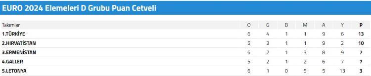 Hırvatistan- Türkiye maçından sonra A Milli Takım maç fazlasıyla liderliğe yükseldi. Ay yıldızı ekip gruptaki yedinci maçını 15 Ekim’de Konya’da Letonya ile oynayacak. Oluşan puan durumu şöyle…
