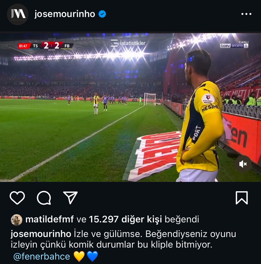Mourinho bu açıklamasının ardından Instagram üzerinden bahsettiği paylaşımı yaptı ancak gönderi saniyeler içinde telif hakkı nedeniyle silindi.