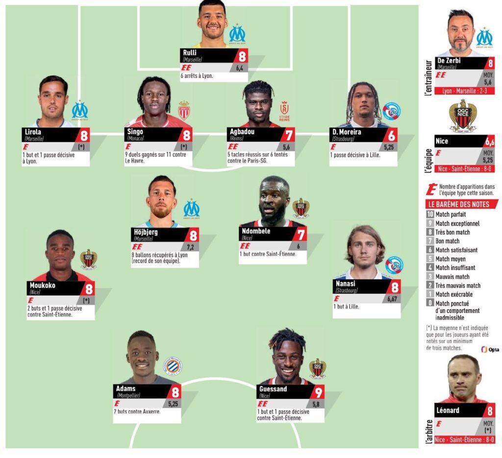 Haftanın öne çıkan oyuncularında elbette Nice takımında forma giyenler etki yarattı. Öyle ki Nice açılış maçında St Etienne’i 8-0 mağlup etmişti. Maçta St Etienne ağlarını sarsan isimlerden biri geçen sezonu Galatasaray’da kiralık olarak geçiren Tanguy Ndombele olmuştu. Ndombele yıllar önce Nice’ten Tottenham’a 60 milyon euro’nun üstünde bir bedelle transfer olmuş ve bu rakam Tottenham kulüp tarihinin rekoru olarak kayıtlara geçmişti. Ancak oyuncu bir türlü Premier Lig’e uyum sağlayamamıştı. Son olarak Galatasaray’a gelen oyuncu fazla kilolarıyla dikkat çekiyor, bir türlü istenen performansı ortaya koyamıyordu.