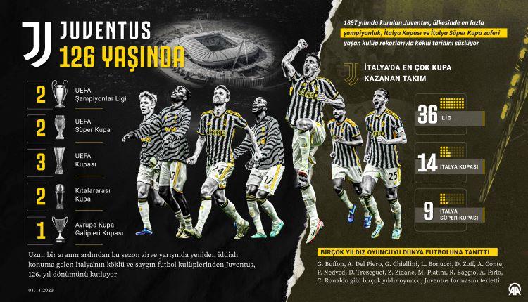 Juventus, İtalya'nın en çok şampiyonluk kazanan takımı. Torino kentindeki Massimo d’Azeglio Lisesi öğrencileri tarafından 1 Kasım 1897’de spor faaliyetleri için kurulan ve iki yıl sonra futbol kulübüne dönüşen Juventus, 126. yılını kutluyor. Latince kökenli ‘gençlik’ kelimesiyle adını kazanan kulüp, adını dünya tarihine altın harflerle yazdıran yıldız isimlerle ülke ve Avrupa futbol tarihinde birçok önemli başarıya imza attı.