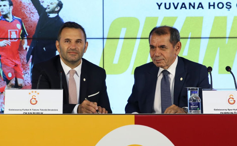 Daha sonra sözü alan Galatasaray Başkanı Dursun Özbek, “Bundan tam iki yıl önce yine burada Okan hocamızın imza töreninde sözlerime şöyle başlamıştım… ‘Bugün Galatasaray için yeni bir başlangıç ve uzun vadeli planlarımızın ilk adımı.’ İşte bu sözlerle iki yıl sonra Okan hocamla yine buradayız. Beraberce inandığımız şeyleri başarmış olmanın gururuyla karşınızdayız. Bir önceki sezonu 13. bitiren takımı yeniden planlayarak sezona başlamak ve Cumhuriyet’in 100. yılında şampiyon olmak. İkinci sezonda Süper Kupa’yı kazanıp yine şampiyon olmak… İnanıyorum ki yolun çok daha başındayız. Kazanılacak çok başarı ve kupalar var” dedi. İki yıl önce olduğu gibi Okan Buruk’un hiçbir rakam konuşmadığını vurgulayan Özbek şöyle konuştu: “Çok samimi söylüyorum, boş mukaveleye imzasını attı. Elbette biz kendisini bu konuda mağdur etmeyeceğiz. Yönetim de gerekeni yapacak. Galatasaray’ın son iki yılda başarılarıyla yarattığı bu hakimiyetin rakiplerimizde birtakım planlamara ittiğini hep beraber izliyoruz. Onları sahada kalmaya davet ediyorum. Umarım rekabetin sahada olması gerektiğini kabul edip buna göre davranırlar. Bizim için sırada 5. yıldız var. Her Galatasaraylı için bundan daha önemli olan Avrupa’daki hedeflerimiz var. Bunun için hiçbir fedâkarlıktan kaçınmayacağımı bildirmek isterim. Mayıslar yine bizim olacak. Okan Buruk’a ekibine, Ali Yiğit kardeşime (Okan Buruk’un oğlu) bu yeni dönemde sonsuz başarılar diliyorum. Hocamla imzaladığımız anlaşmanın Galatasaray için hayırlı olmasını diliyorum.”