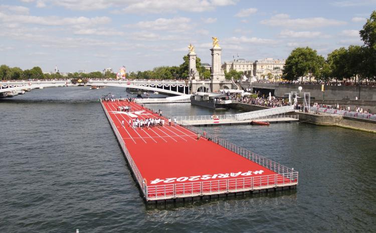 Üçüncü Alexandre Köprüsü yakınındaki Seine Nehri üzerinde yüzen yarış pisti kuruldu.