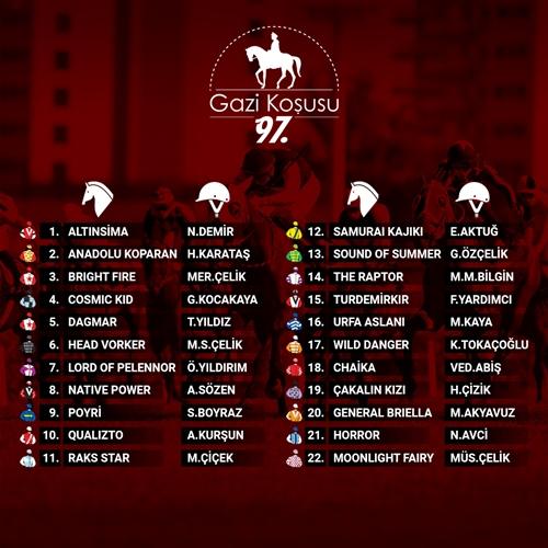 * 2009’da Miramis ile şampiyon olan Gökhan Kocakaya, Cosmic Kid ile ikinci kez Gazi’yi kazanmaya çalışacak. Fakat Dubai yolculuğu ve yorgunluk performansını etkileyebilir.