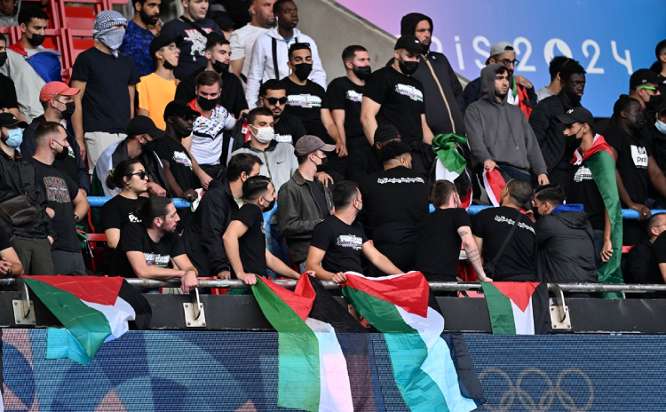 Erkekler futbolda D Grubu maçında İsrail ile Paraguay Parc des Princes Stadyumu’nda karşılaştı. Taraftarlar, tribünde ‘Soykırım Olimpiyatları’ pankartı açarak, İsrail’i protesto etti. Tribünlerde Filistin bayrakları da yer aldı. Karşılaşmadan Paraguay 4-2’lik skorla galip ayrıldı.