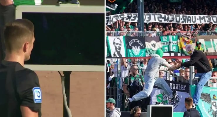 Almanya 2’nci Futbol Ligi’nde Preussen Münster-Hertha Berlin karşılaşmasında maskeli taraftar sahaya girip VAR’ın fişini çekti. Hakem penaltıyı inceleyemedi.