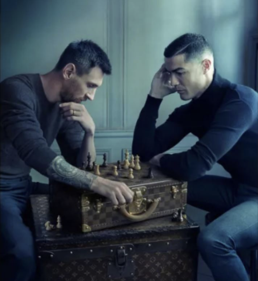 Tam da Dünya Kupası başlıyor. Tam da, “Dünyanın en iyi oyuncusu”nun hangisi olduğu yıllardır futbolseverlerin çenesini yoran iki dev oyuncu, Arjantinli Lionel Messi ile Portekizli Christiano Ronaldo ülkelerinin milli formasıyla sahaya çıkmak üzere. Dünyaca ünlü lüks marka Louis Vuitton, bir reklam kampanyasında bu iki oyuncusuyu birden kullandı. Markanın ünlü kareli valizinin üzerinde satranç oynarken görüntülenen Messi ve Ronaldo dün kendi milyonlarca takipçili sosyal medya hesaplarından reklam kampanyasını aynı anda başlattı. Sosyal medya dünyanın her yerinde bu paylaşımları konuşuyor.