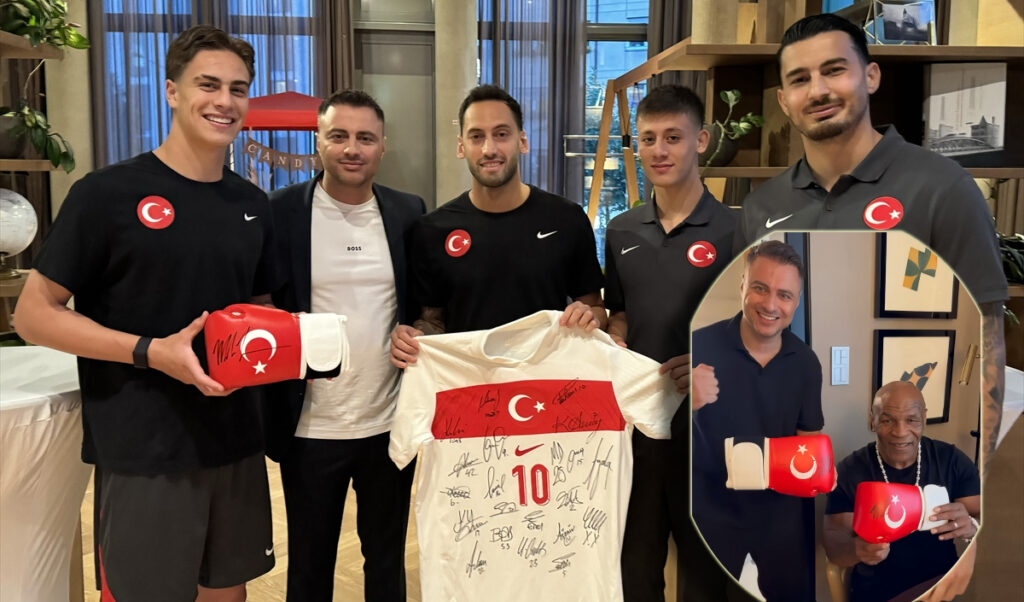 Avusturya karşılaşmasında ay-yıldızlı ekibi destekleyen Tyson’ın eldivenlerini, kendisiyle birlikte çeşitli projelerde çalışan iş adamı Vahap Oğuz Arslan, kaptan Hakan Çalhanoğlu’na verdi.