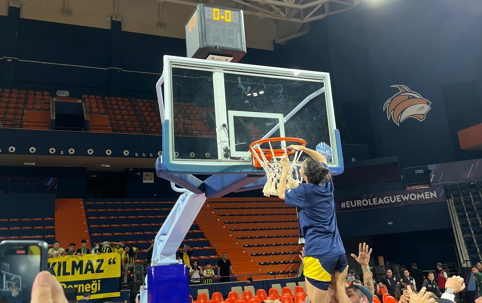 Kupa seremonisi ardından saha birçok taraftarla doldu. Saha içi koltuklarında oturan sarı-lacivertli seyirciler oyuncularla fotoğraf çektirme şansını kaçırmadılar. Ben ve benim gibi basın mensuplarından bazıları mixed zone’da röportaj alma ümidiyle bekliyorlardı. Bekleyiş biraz uzayınca sahaya döndüm. İyi ki de dönmüşüm zira gördüğüm manzara daha bekleyişin süreceğini gösterir nitelikteydi. Dörtlü finalin en değerli oyuncusu seçilen Kayla McBride sayısız insanın fotoğraf isteğini olumlu karşılıyordu. Alperi Onar adet gereği fileyi kesiyor ve hatıralara bir yenisini ekliyordu. Kupa elden ele dolaşıyor ve kamera flaşları sayısız kez patlıyordu. Fenerbahçe, konfetilerin üzerinde şampiyonluğunu taraftarıyla doyasıya kutluyordu.