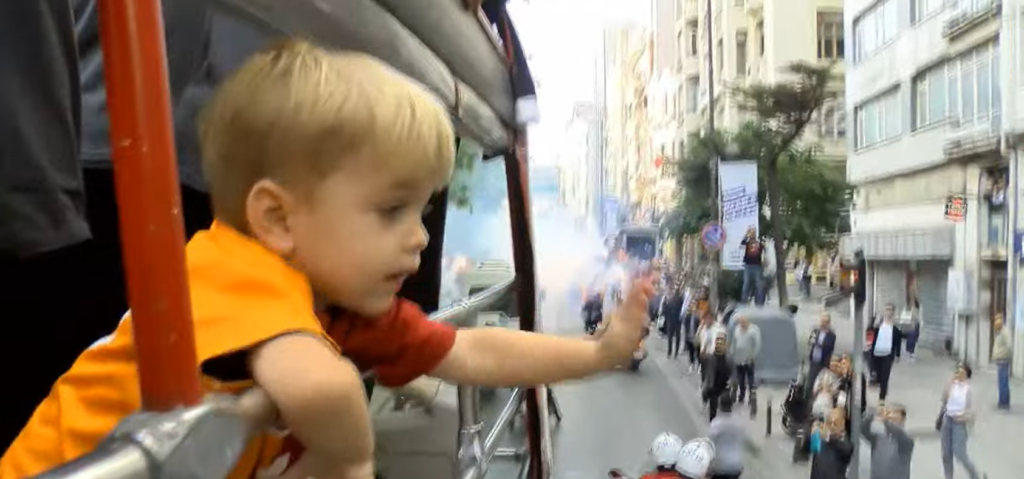 Otobüsün hareketlenmesi sonrası kafile Tarlabaşı Bulvarı üzerinden Taksim, Osmanbey, Şişli, Mecidiyeköy ve Büyükdere Caddesi güzergahından geçerek RAMS Park’a ulaşmaya çalıştı. Yolculuk sırasında yolu kapatan, otobüsün yanından otomobil ve motosikletlerle bayrak sallayarak geçen ve yaya olarak futbolcuları selamlayan on binlerce Galatasaraylı taraftar İstanbul’un dört bir yanını sarı-kırmızı renge boyadı.