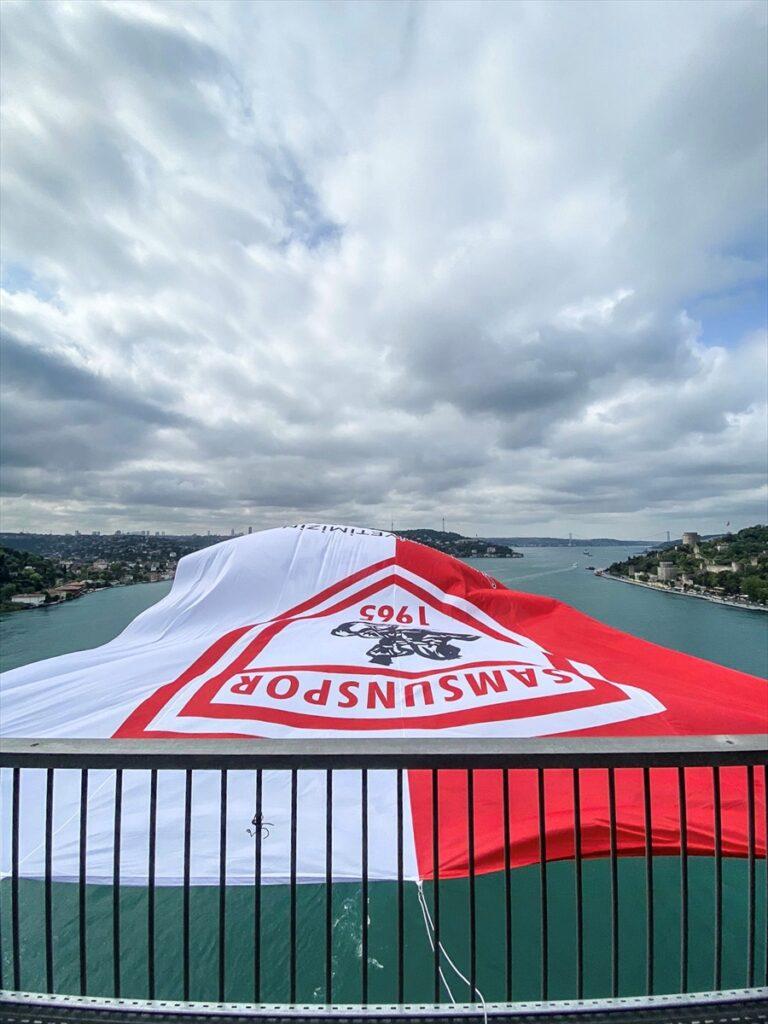 Şampiyonluğunu ilan eden Samsunspor’un bayrakları, İstanbul Boğazı’ndaki köprülere asıldı.