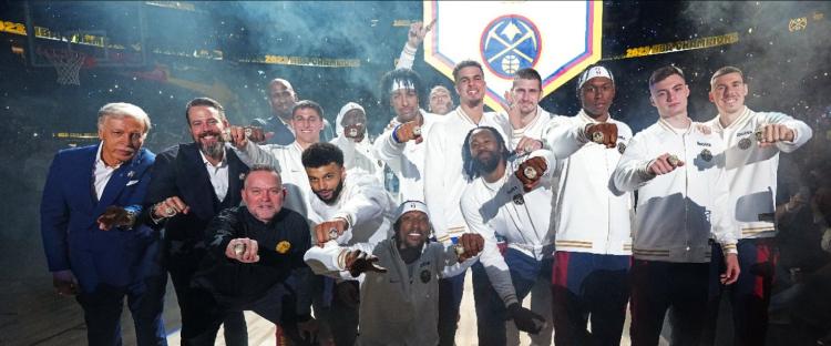 Nuggets’a geçen sezon tarihinin ilk şampiyonluğunu kazandıran oyuncular, düzenlenen törenle yüzüklerini aldı.