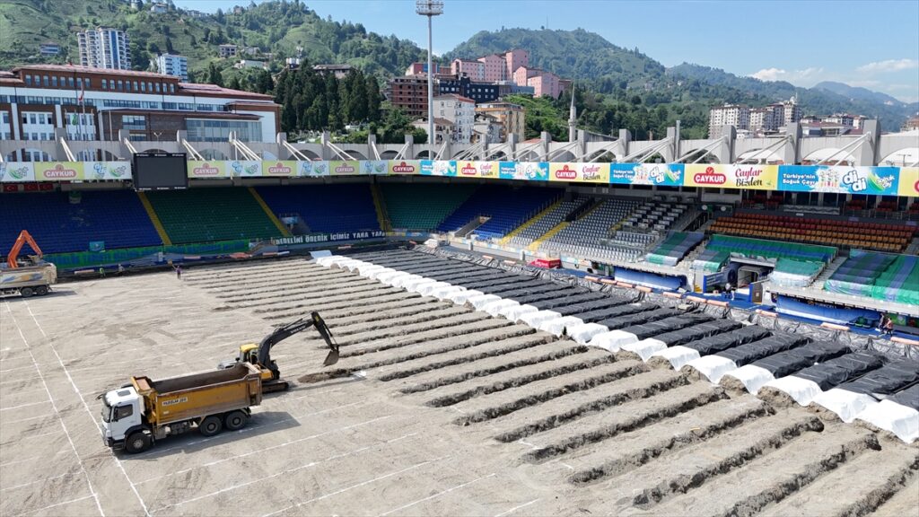Geçtiğimiz sezon Fenerbahçe’nin deplasmanda oynadığı ve yağan yağmur sonrası mini göletlerin oluştuğu Rizespor stadının zemininde yenileme çalışmaları başladı. Rizespor Başkanvekili Adnan Er zeminin yeni sezona yetiştirilmeye çalışıldığını söyledi.