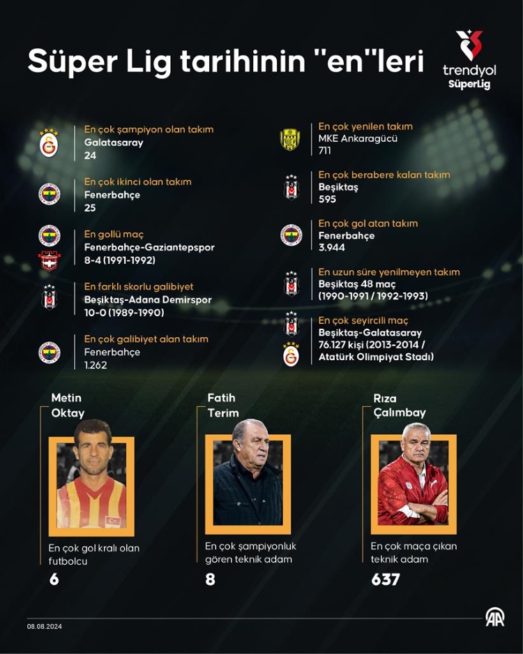 Abdullah Avcı yönetimindeki Trabzonspor 2021-2022 sezonunda 38 yıl aradan sonra şampiyon oldu. Ligde son iki sezonun şampiyonu ise Okan Buruk’un çalıştırdığı Galatasaray. Sarı-kırmızılı takım geçen sezon ligdeki 38 haftalık maratonu 33 galibiyet, üç beraberlik ve iki mağlubiyetle 102 puan toplayıp zirvede tamamladı, ligin puan rekoruna ulaştı. Sarı-kırmızılı takım geçen sezon ligin 20-36. haftalarda 17 müsabakadan galibiyetle ayrıldı. Galatasaray geçen sezon ligde çıktığı 38 maçın 33’ünü kazanarak bir sezonda elde edilen galibiyet sayısında da rekorun sahibi oldu.