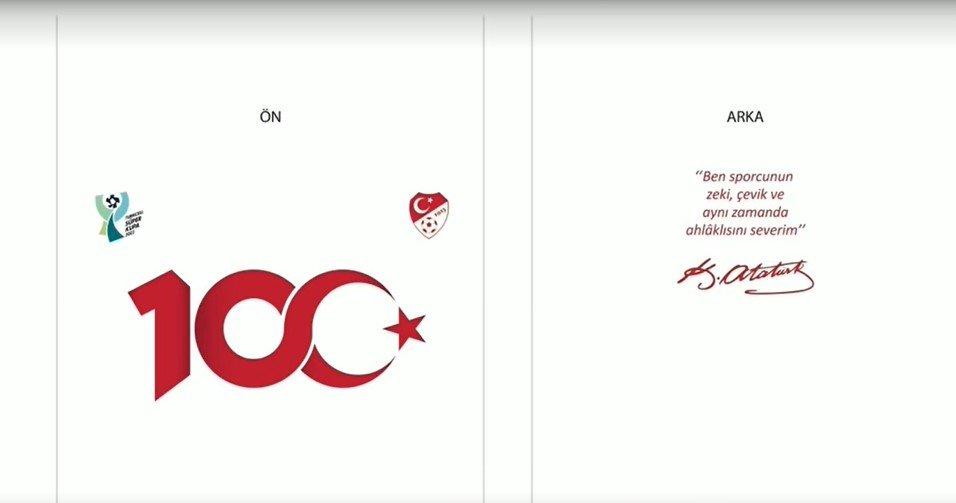 18 Aralık 2023: TFF, seremoniye katılacak çocukların önünde 100. yıl logosu arkasında Mustafa Kemal Atatürk’ün imzası ve ‘Ben sporcunun zeki, çevik ve ahlaklısını severim’ cümlesinin bulunduğu beyaz tişörtle sahaya çıkacağını kulüplere bildirdi.