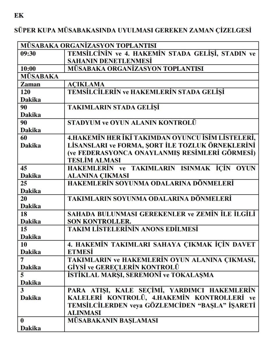 Süper Kupa müsabaka talimatnamesi bu şekilde.
