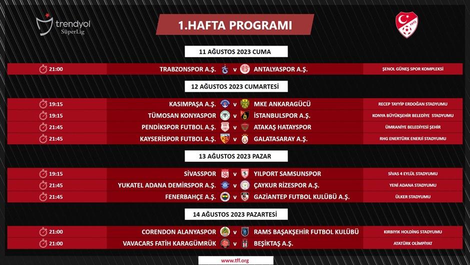 Süper Lig’de ilk hafta programı.