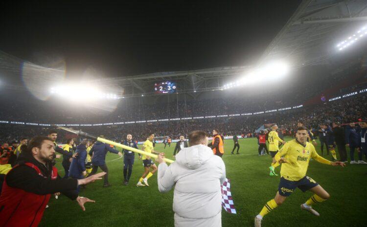 Olaylar maç içiyle sınırlı kalmadı. Karşılaşma bitti, Fenerbahçeli futbolcular orta sahada sevinirken sahaya Trabzonlu holiganlar girdi. Futbolculara saldırmaya başladılar. Olaylar büyüdü, Fenerbahçeli futbolculardan Osayi Samuel sahaya ilk giren saldırgana karşılık verirken, Jayden Oosterwolde, Michy Batshuayi, Rade Krunic gibi isimlerin kendilerini savunduğu göründü. Sahaya giren bir holiganın köşe direğini yerinden söktüğü ve direğin sivri ucuyla milli futbolcu Mert Müldür’e saldırdığı anlar kayıtlara geçti.