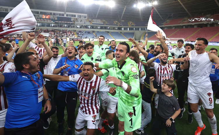 Hataysporlu oyuncular ligde kalmalarını coşkuyla kutladı.