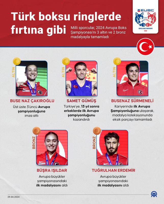 Türk boksu Avrupa Boks Şampiyonası'nda tarih yazdı. Busenaz Çakıroğlu, Buse Naz Sürmeneli ve Samet Gümüş altın madalya kazanırken olimpiyat kotası almayı da başardılar.