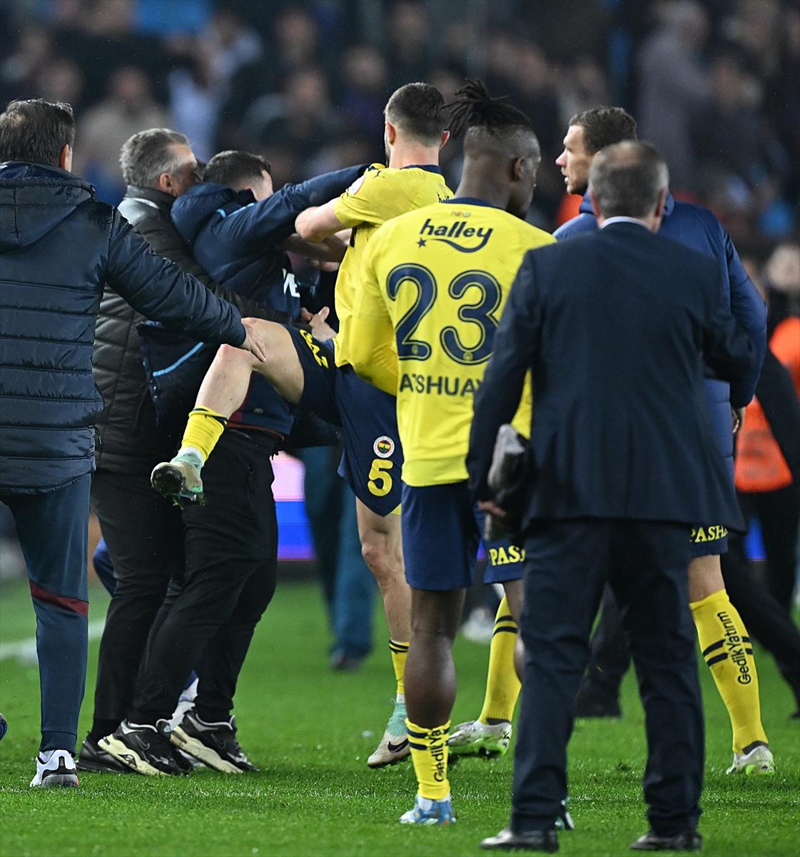 Sahaya giren Trabzonspor taraftarı Fenerbahçeli futbolculara saldırdı.