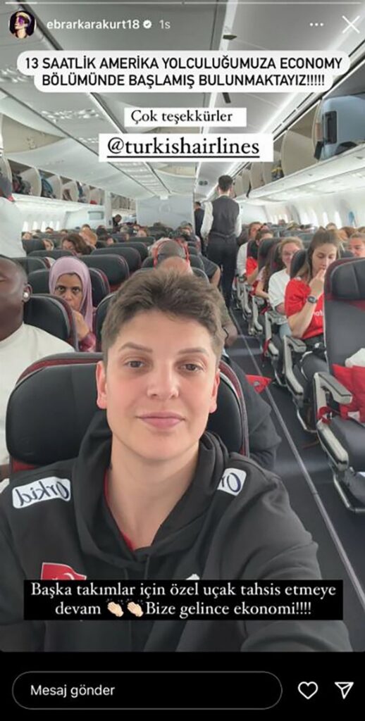 TVF'den THY'nin uçak açıklamasına yanıt geldi. Pazar gününe Filenin Sultanları’nın paylaşımları damga vurdu. Kaptan Eda Erdem, Ebrar Karakurt, Simge Aköz gibi takımın önde gelen oyuncuları 13 saatlik ABD yolculuğunu ekonomi sınıfında yapmaya isyan etti. İsyanın sebebi boyu 1.90’nın üstündeki sporcuların zar zor oturabildiği bir yerde uzun süreli seyahat yapmak zorunda kalmasıydı. Sponsor firma Türk Hava Yolları etiketlenerek mağduriyet paylaşıldı.