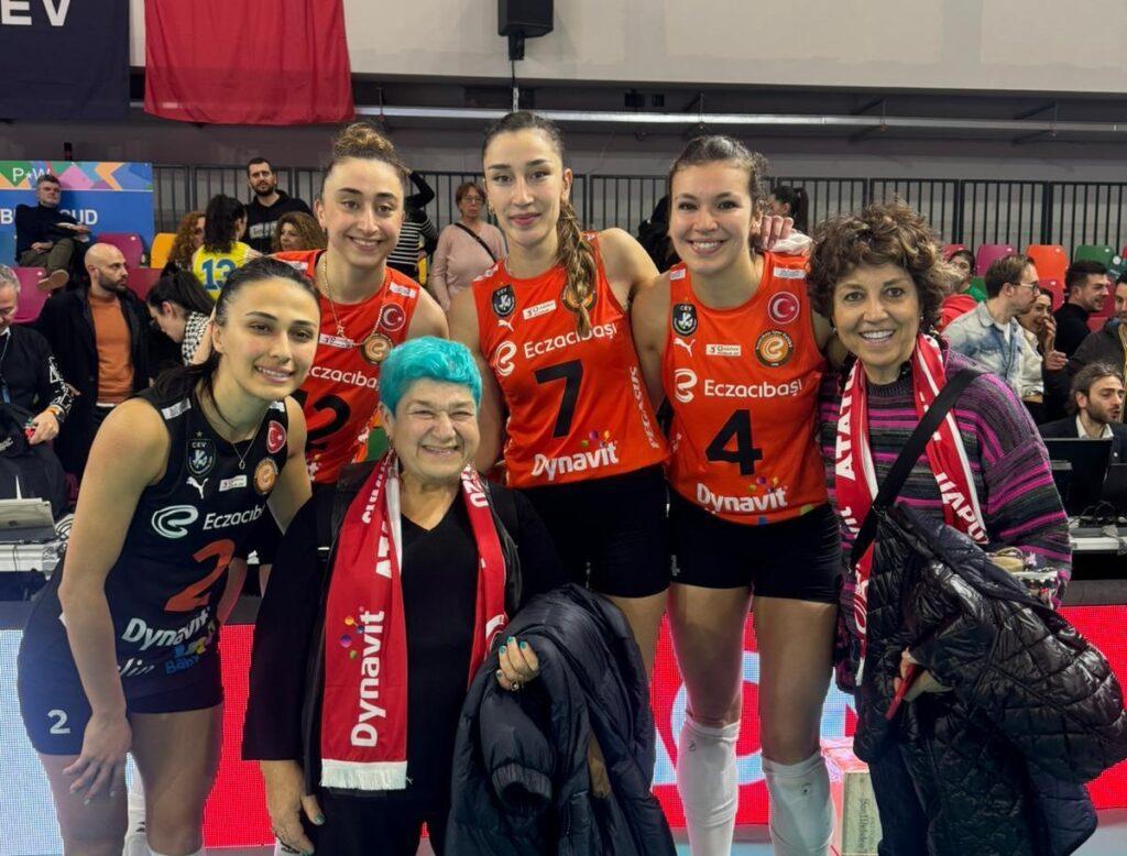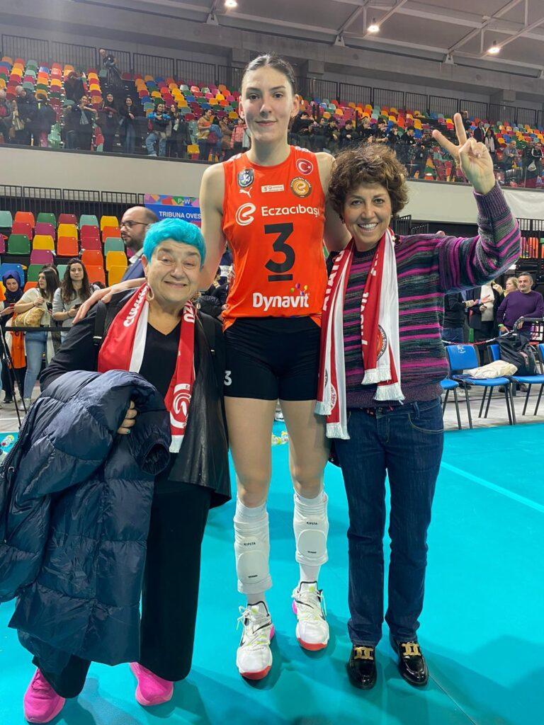 Serra Yılmaz ve arkadaşı Gülseren Onanç, maç sonu Eczacıbaşı’nın yıldız pasör çaprazı Tijana Boskovic’le.