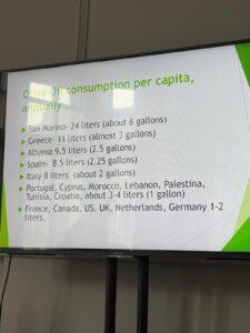 Tam bu sunumlardan birinde, ülkelerin kişi başına zeytinyağı tüketim rakamları ekrana yansıtıldı.