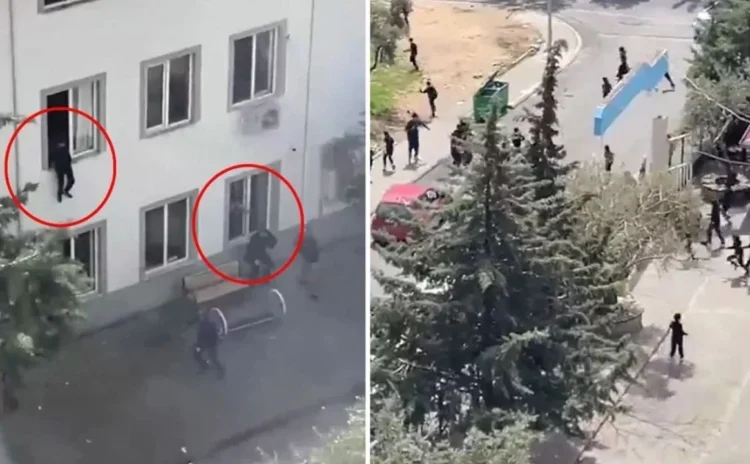Çocuklar hayatta kalabilmek için camlardan atlıyor. Öğretmenler öğrencilerini korumaya çalışıyor. Sınıflar panik içinde.
