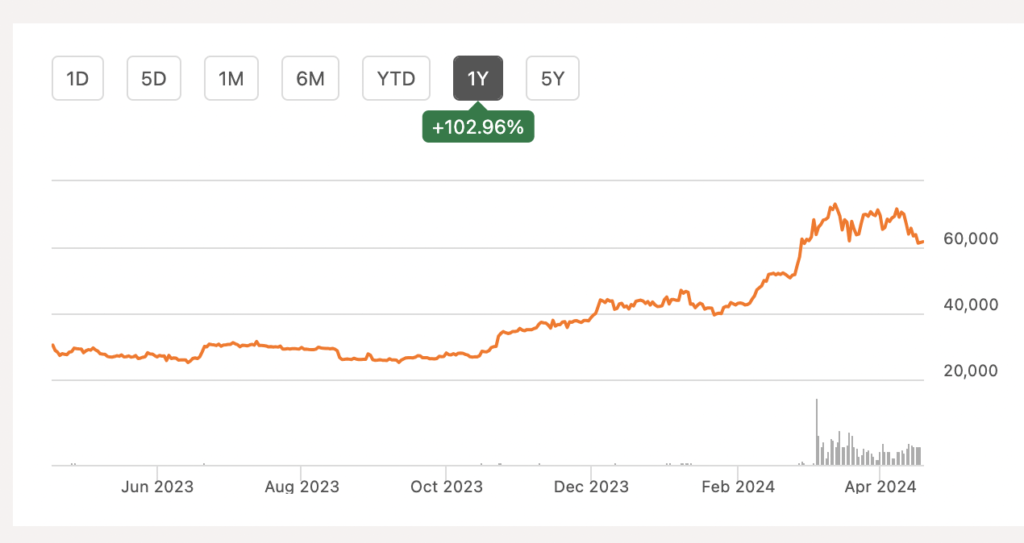 Son bir yıldaki rallinin nedeni 11 Ocak’ta Amerika’da onaylanan ETF’ler, yani Bitcoin’un spot fiyatına dayalı endeks fonlarıydı. Blackrock, Fidelity gibi dev yatırım şirketlerinin kurduğu bu fonlara o günden bu yana 12 milyar dolardan fazla para girdi. Bu para Bitcoin talebine dönüştü, talepteki artış da fiyatı yukarıya taşıdı.