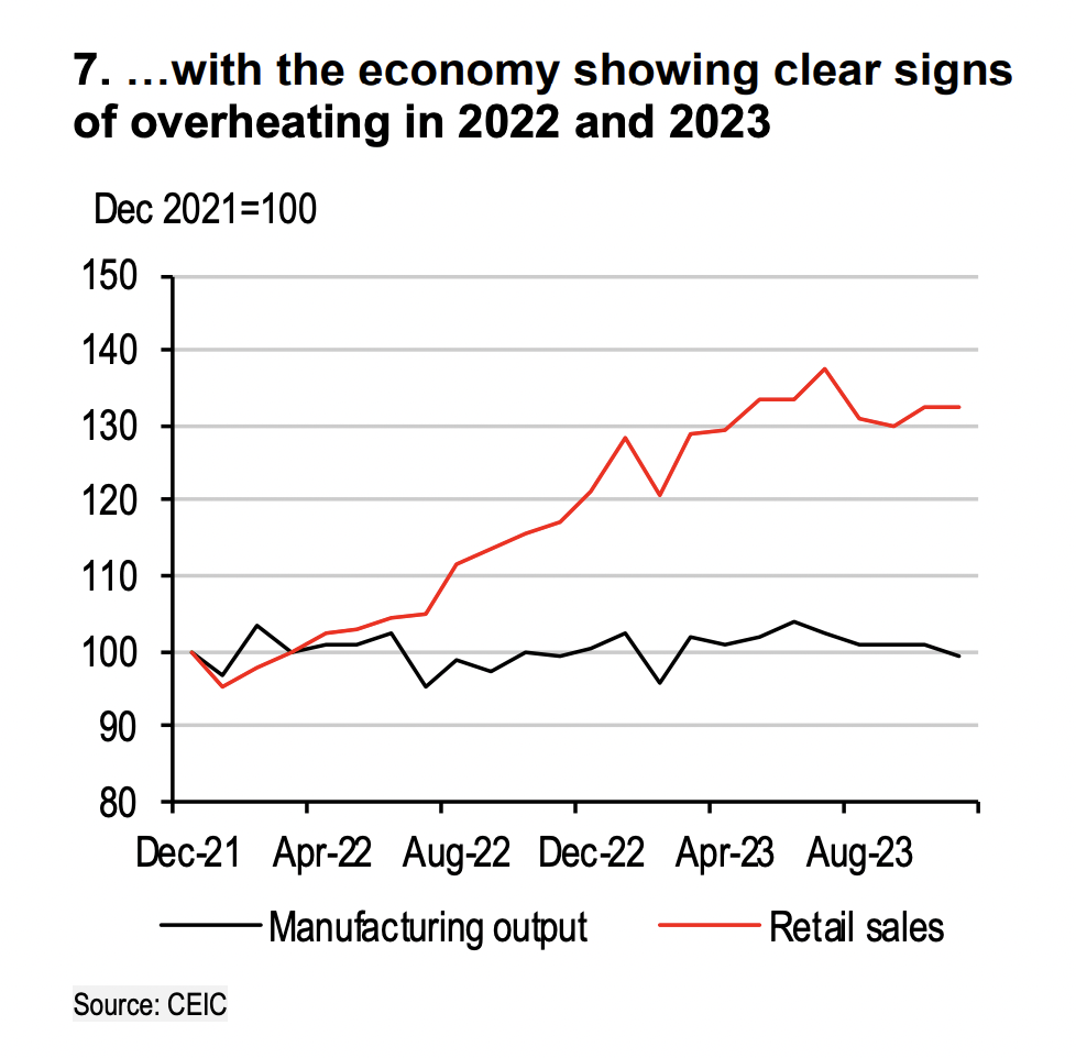 2023 seçimleri öncesinde perakende tarafında satışlar çok canlıydı. Evet, insanlar “Aman param enflasyon karşısında erimeden ne alacaksam alayım” düşüncesiyle kendisini tüketime vurmuştu ama sonuçta bu olgu ekonominin küçülmesine değil, tam tersine büyümesine, hatta potansiyelinin üstünde büyümesine neden oldu. Mesela otomobil satışlarında tarihi rekorlar kırıldı, otoda al sat yaparak birkaç ayda yüz binlerce lira kazanan bir kesim ortaya çıktı.