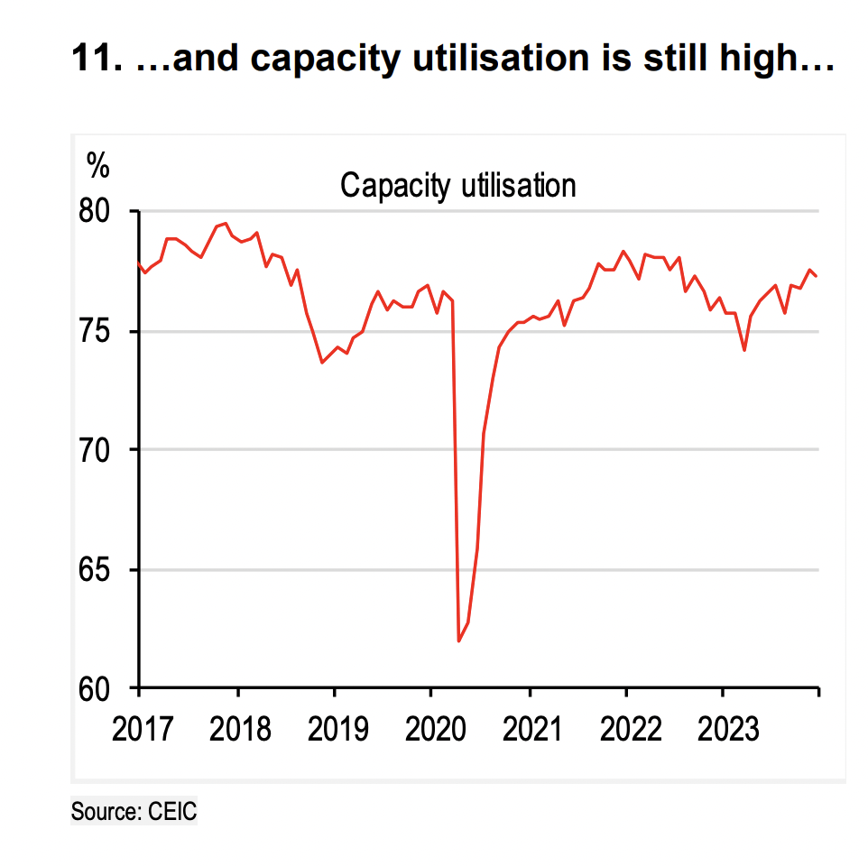 Yüksek tüketim sayesinde imalat sanayinde kapasite kullanımı da çok yüksek seyretti.