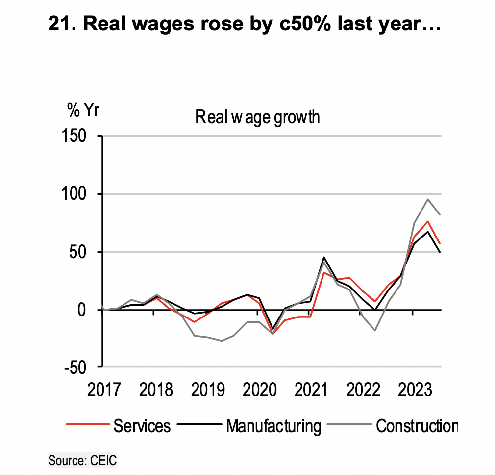 Fakat 2023 Mayıs seçimleri öncesinde yapılan zamlarla asgari ücretin en azından bir süre için enflasyonun üstüne çıkması sağlandı.