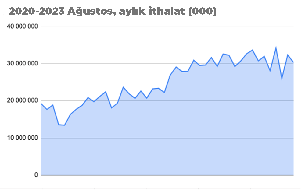 Oysa aynı dönemde Türkiye’nin aylık ithalatı ortalama 20 milyar dolardan 30 milyar dolara çıktı.
