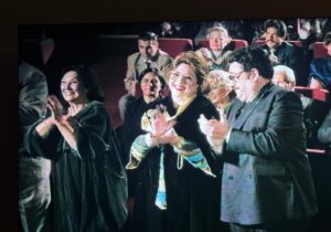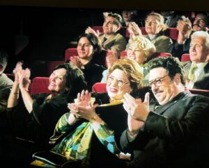 Ve “o en yukardaki biri” ve eşi oyuncuları ayakta alkışlıyor.
