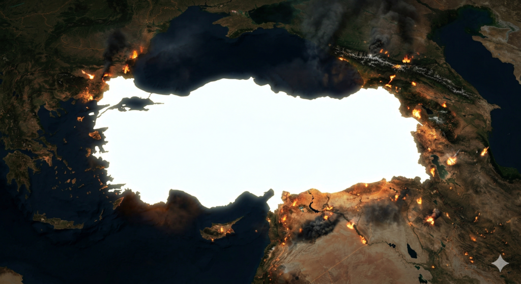 Bizi de Doğu sınırımızda başlayan bu lanetli Orta Doğu’nun siyah noktalarla delik deşik haritasına dahil etmektir.