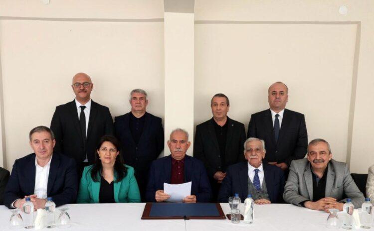 Sağında Pervin Buldan solunda Ahmet Türk, onun yanında Sırrı Süreyya Önder.