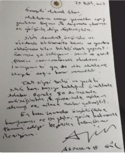 Bugün eski Cumhurbaşkanı Abdullah Gül’den bir mektup aldım.